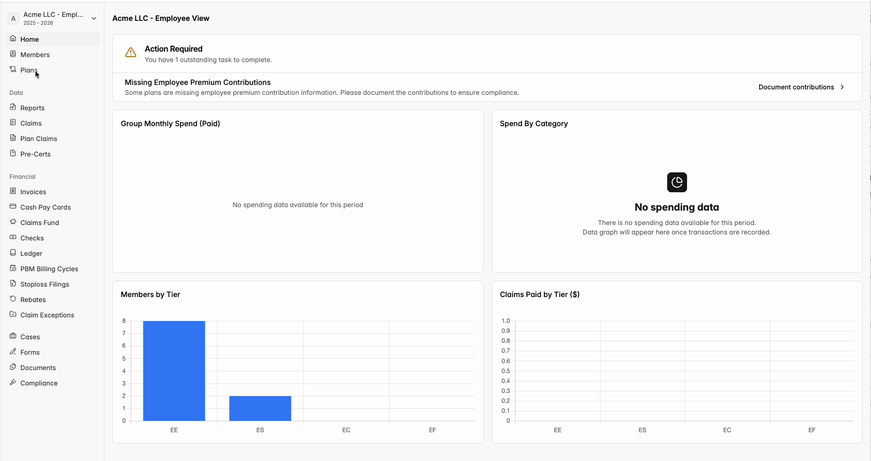 Click into the ‘Plans’ tab on the left-hand side of your portal and find the ‘Cobra Status’ row to determine who manages your COBRA coverage.