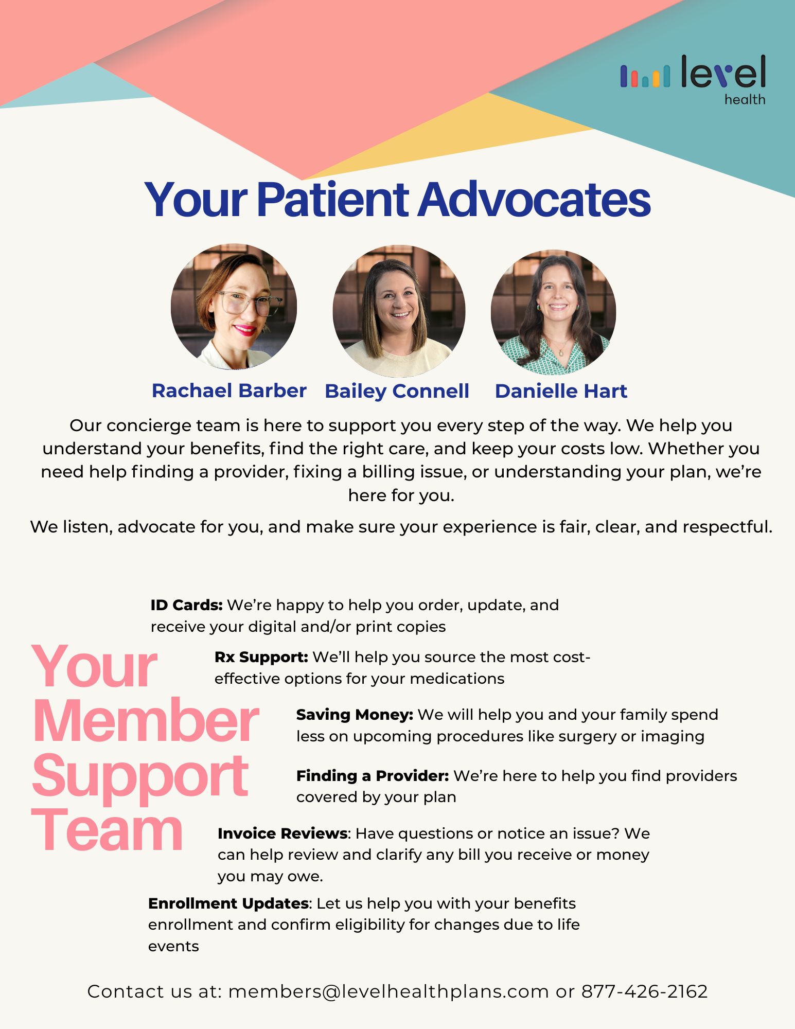 Patient Advocates February 24, 2026 19:45 Updated Related to Patient Advocates Customer Service Help Knowledge Experts Plan Experts Support Team Concierge Team Level Health Flyers.zip 3 MB Download Patient Advocates.jpg 500 KB Download